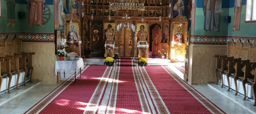 Some churches choose to cover the entire floor with a single large rug, while others prefer smaller rugs, strategically placed over the main colors. Both variants are correct, it is important to choose the dimensions based on the architectural project and the number of faithful.