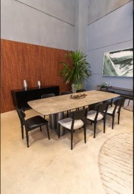 • Sculptural Metals: The base or frame is frequently crafted from materials like brushed brass, polished stainless steel, or bronze. These metals are often used in architectural, geometric designs, turning the table base into a sculpture itself.